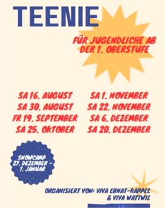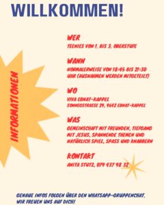 Teenie-Treff zweimal im Monat am Samstagabend für Teenager von der 1. bis 3. Oberstufe